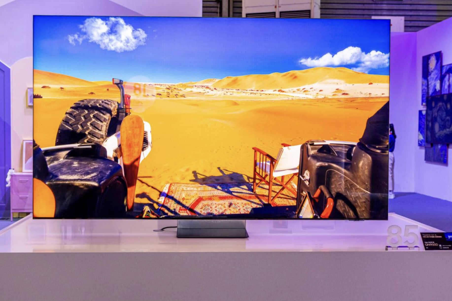 电视方面,三星着重展示了新品“Neo QLED 8K QN900D”,作为一款AI电视,搭载三星新一代AI芯片NQ8 AI Gen3,支持8K AI影像增强、AI三维景深增强Pro等功能,配合AI音质调教,呈现了更好的音画表现。