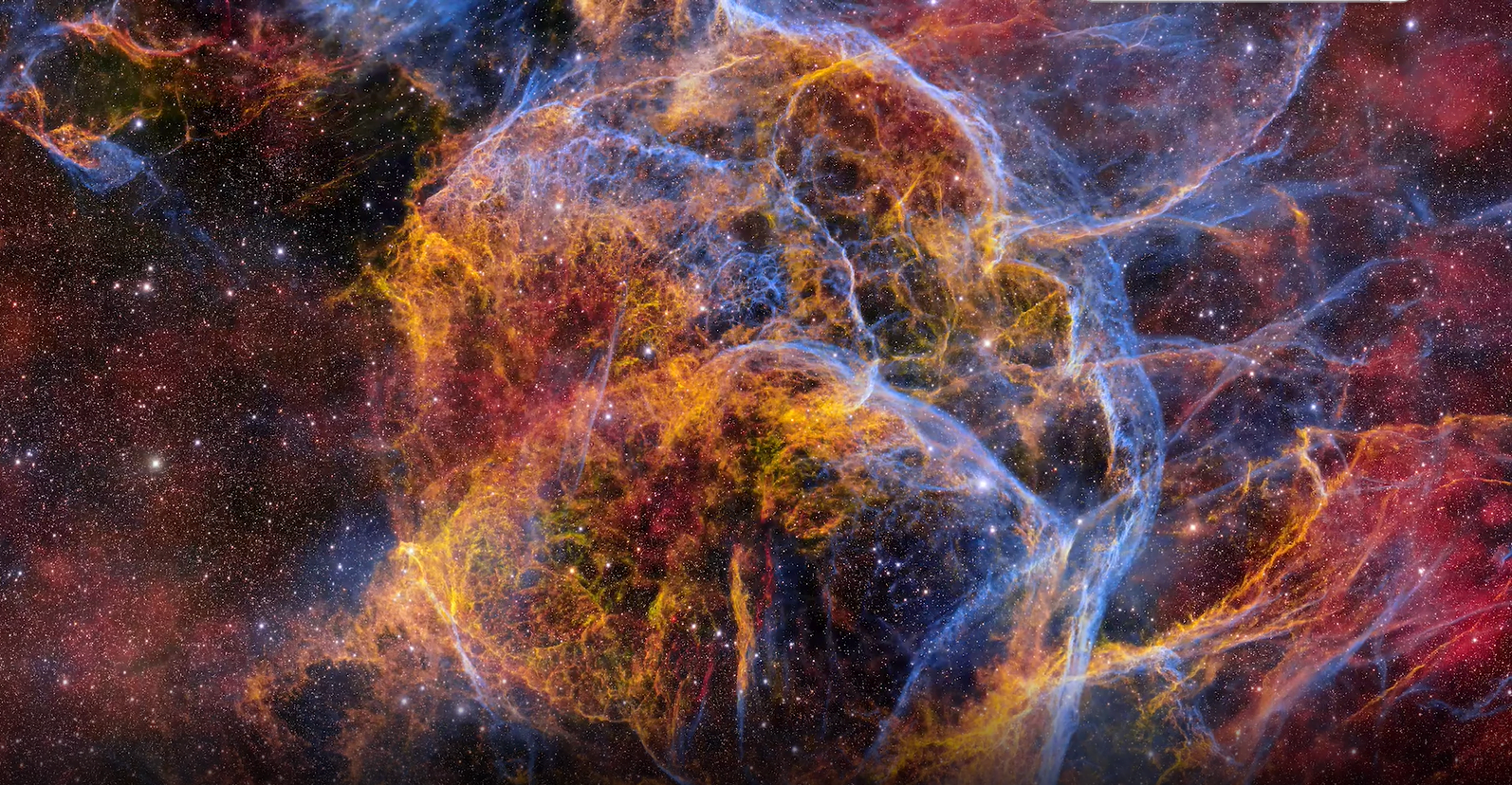 超新星射击。天文学家在智利托洛洛山美洲天文台使用望远镜安装的暗能量相机(DECam)拍摄了这张令人惊叹的船帆座超新星遗迹的1.3千兆像素图像-这是一颗星星在10,000多年前爆炸的遗迹。通过几个DECam过滤器拍摄的图像,每个过滤器允许不同波长的光通过,结合起来产生明亮的颜色。由此产生的照片- DECam迄今为止分辨率最高的照片-以前所未有的细节显示了尘埃和气体交织的羽流。