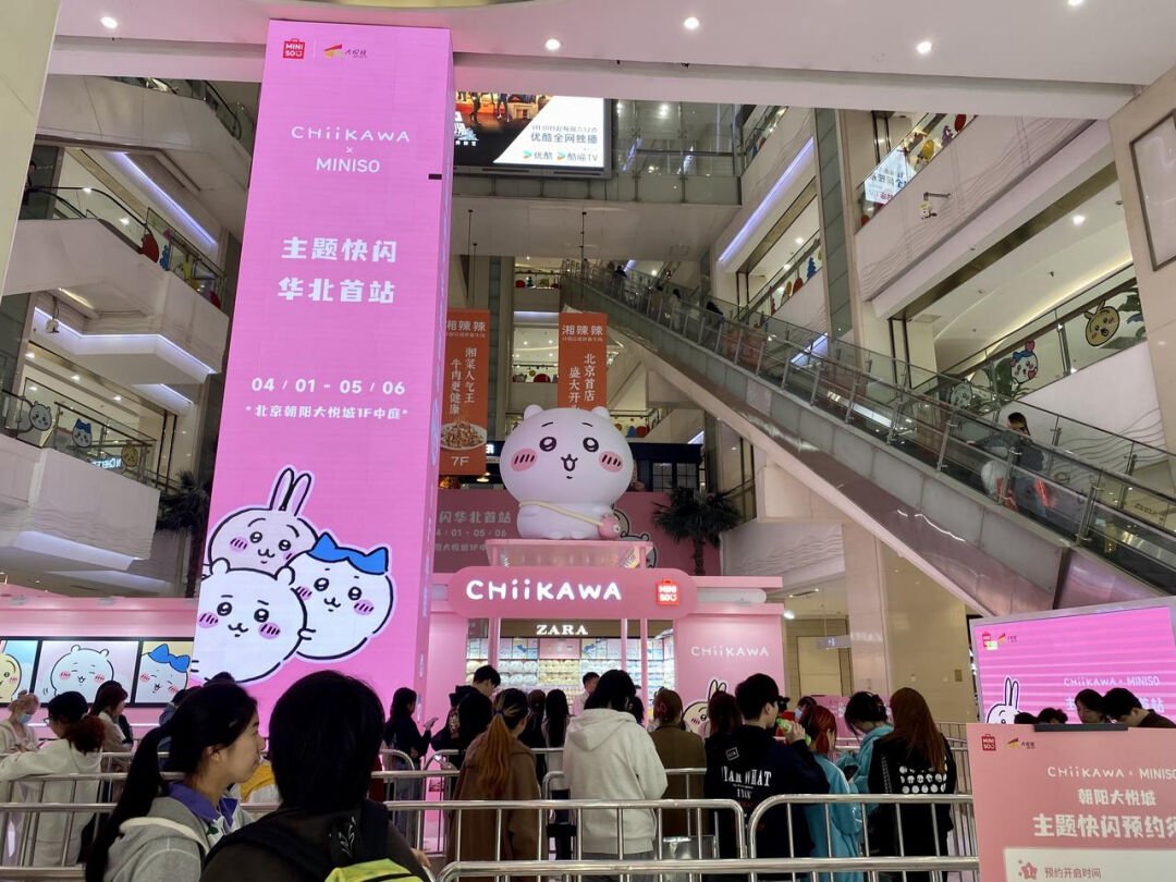 在国内,赚到Chiikawa第一桶金的则是名创优品。北京上海两家快闪店的火爆出圈,也让这个一直走在联名路上的品牌,把Chiikawa推上了新的热度。