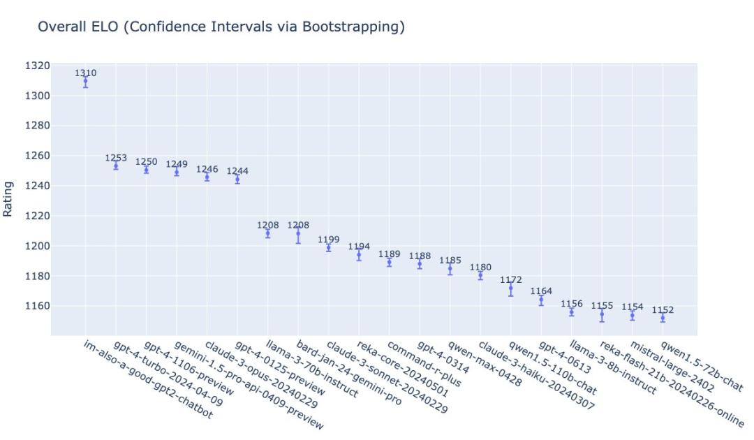OpenAI研究员威廉·费达斯(William Fedus)表示:“GPT-4o是我们最先进的新前沿模型。我们一直在LMSys arena上测试一个版本im-also-a-good-gpt2-chatbot。”