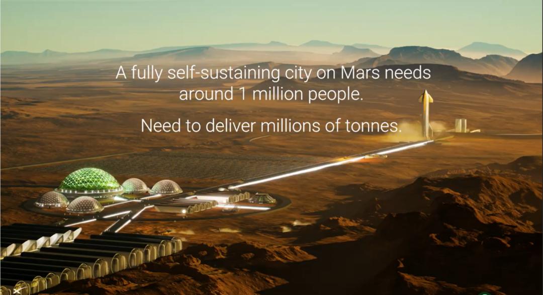 如同马斯克本人所预设的“常规操作”:「如果每天发射 10 次、每次运载200吨,每一轮火星任务期间能向火星运送25万吨物资。」按照火星发射机会两年一遇的频率来算,一座城市在最多十几年间,是有可能被建成的。当然,这一切预设,都是在不考虑数量惊人的基础设施和甲烷排放的前提下进行。