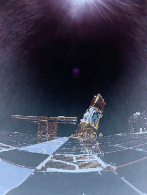随着展示月球表面布满撞击坑的飞行经过画面,航天器还捕捉到了月球南极区域的惊人影像。