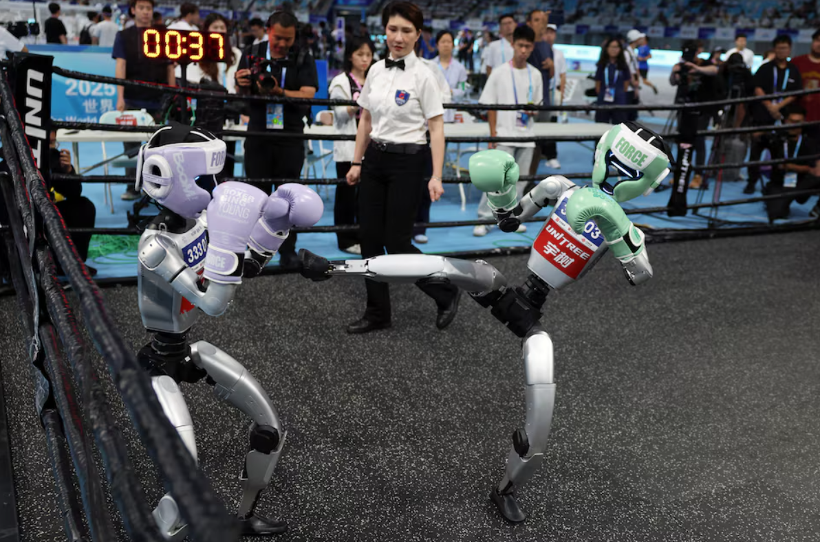 At the robot games in Beijing, which charged 128 to 580 yuan ($17.83-$80.77) for tickets, humanoids crashed into each other and toppled over repeatedly during football matches, while others collapsed mid-sprint during running events.